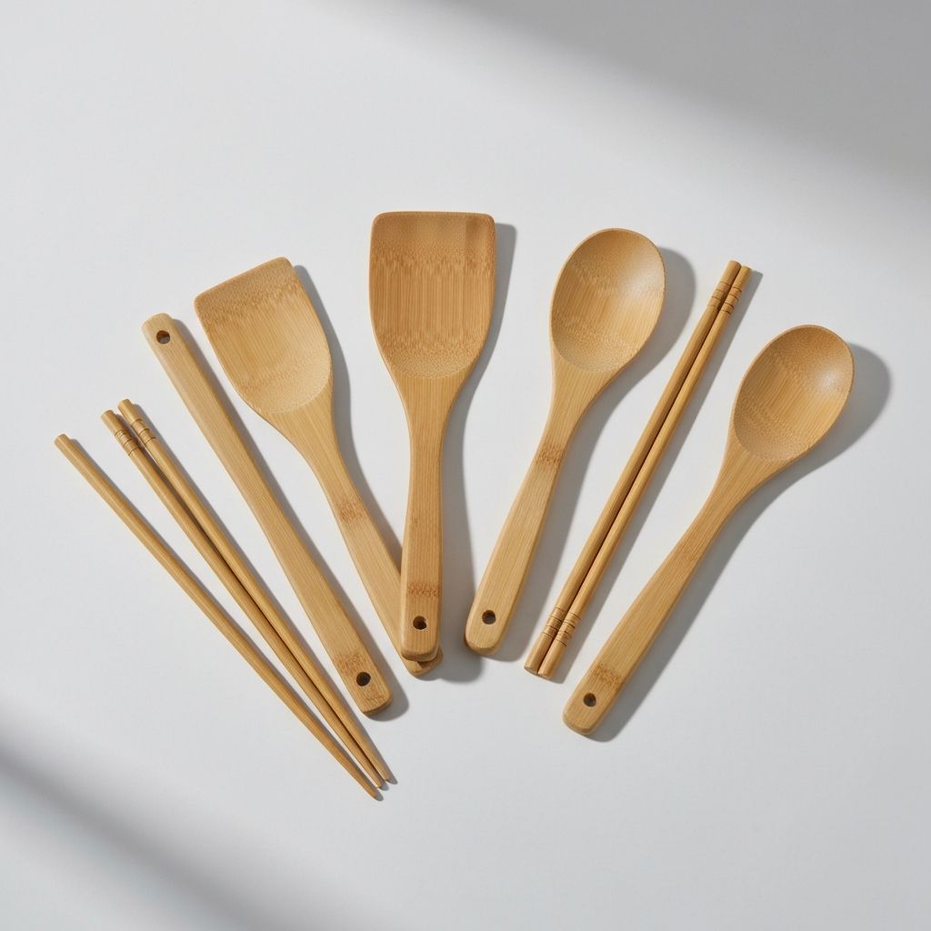 Bamboo utensils, glass jars, compostable sponges