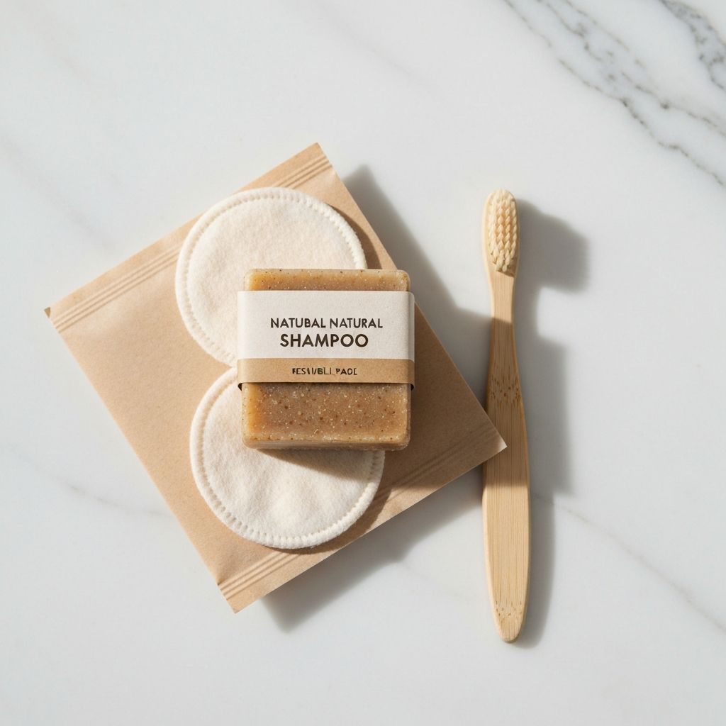 Shampoo bars, reusable cotton pads, bamboo toothbrush